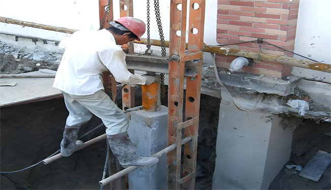 在施工過程中,首先需要進(jìn)行現(xiàn)場勘測與設(shè)計,確定加固方案。隨后,在基礎(chǔ)上開鑿出壓樁孔和錨桿孔,利用錨桿反力,通過反力架和千斤頂將樁段從基礎(chǔ)壓樁孔內(nèi)逐段壓入土中,直至達(dá)到設(shè)計深度。最后,將樁與基礎(chǔ)連接在一起,形成穩(wěn)定的結(jié)構(gòu)體系。