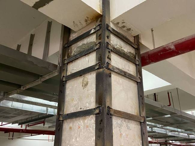 外粘型鋼加固技術是通過在混凝土結構表面粘貼鋼板,利用高強度的粘結劑將鋼板與混凝土牢固結合,從而提高結構的承載能力和抗震性能。該技術適用于梁、柱、墻等多種結構部位的加固,尤其適用于抗震加固和承載力不足的結構改造。